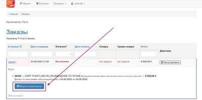 - В личном кабинете Backstage перейти в раздел с заказами, выбрать заказ