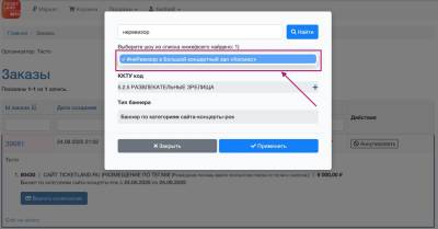 - В поле «ККТУ код» выбрать наиболее подходящий для рекламируемого мероприятия код