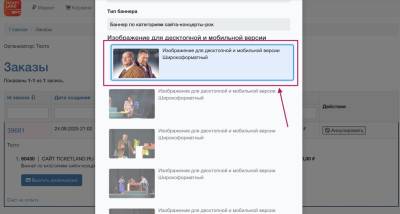 - Из списка загруженных баннеров выбрать подходящий и щелкнуть на нем мышкой