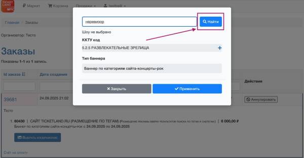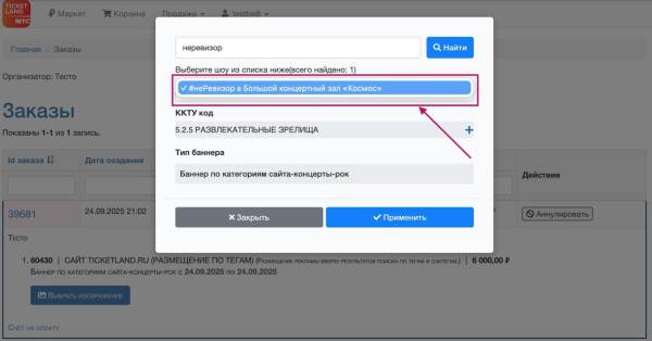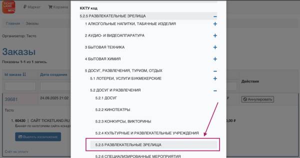 Примечание: Рекламодателю необходимо выбрать подходящий для описания мероприятия код категорий товаров и услуг (ККТУ), который будет автоматически передан в единый реестр интернет-рекламы для маркировки рекламы. Обычно для рекламы на сайте www.ticketland.ru используется код 5.2.5., он уже установлен в поле ККТУ, его можно оставить или заменить на другой из раскрывающегося списка.