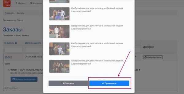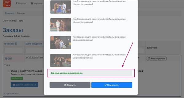 Загрузка баннера в новой форме заказа